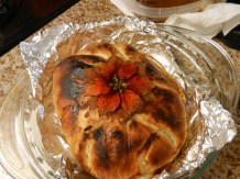 In the meantime, Thanksgiving arrived. I spent it with friends. My lovely friend, Crystal, was kind enough to have my dear friend, Amy, and me over to her home. Crystal’s a top-notch chef who owned a restaurant prior to business school. I was in charge of the cheese plate and decided I wanted to bring a few of my favorite types along with Brie and apples baked in pastry dough. I took myself to the grocery store and they were all out of pastry dough. I thought about possible alternatives like biscuit or pizza dough and decided against them.
