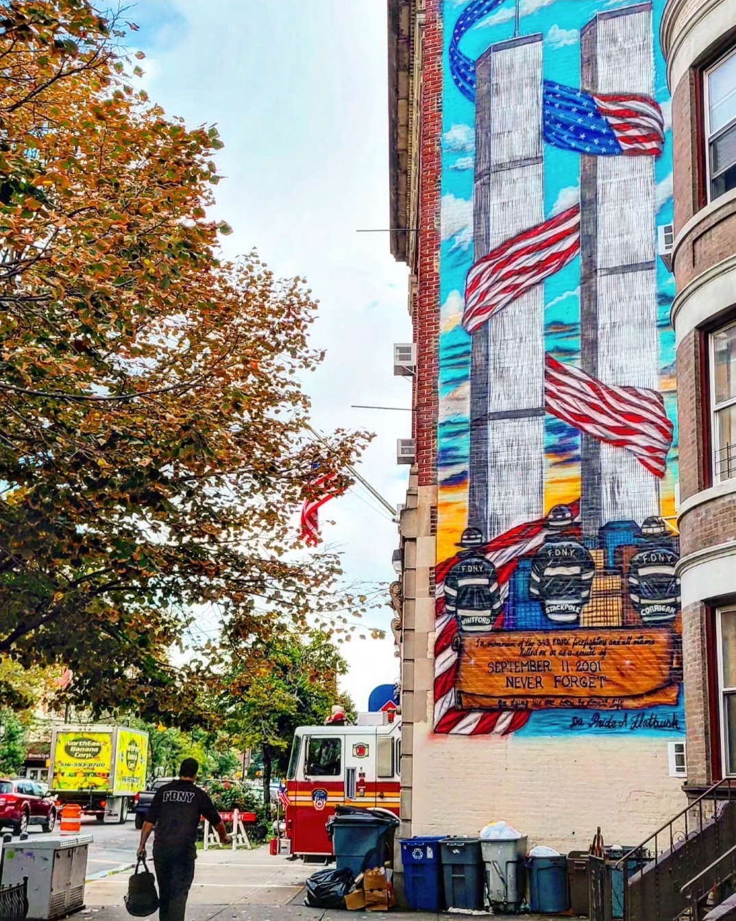 So this morning, as I’ve done for 22 years, I went for a run. I went by my local firehouse in Ditmas Park, Brooklyn with this mural memorial to the neighborhood FDNY firefighters we lost. I reveled in beauty by hanging up art in my apartment. I sat down at my laptop and wrote. I planted seeds that will eventually grow into plants and flowers. I carried on for those we’ve lost and the many who grieve. I cried. I remembered.