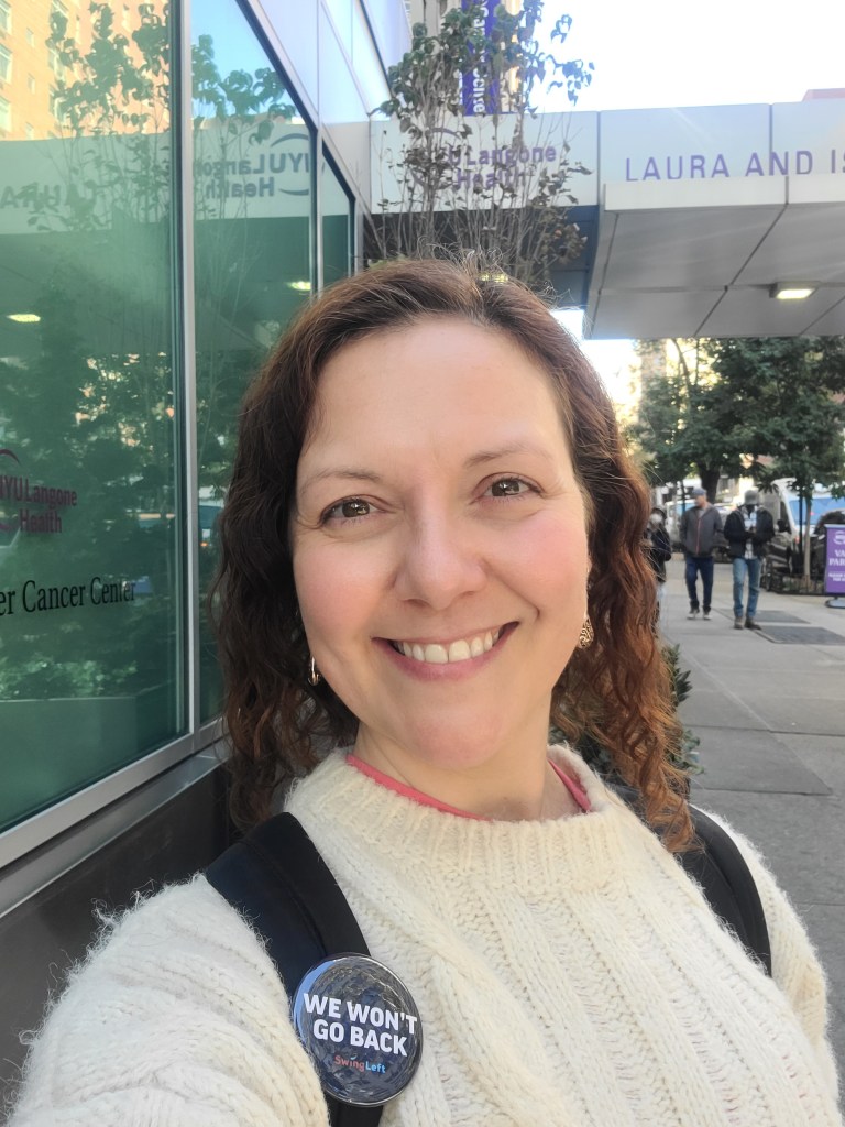 Five years ago, I was marching from the subway to NYU hospital for yet another surgery—two weeks after a bilateral mastectomy—with the high-stakes knowledge that if cancer cells were hiding in my body, my surgeon was going in to find them. This photo memory, which Google popped up yesterday, was taken right after I left the hospital and showcases the hope I felt that day.