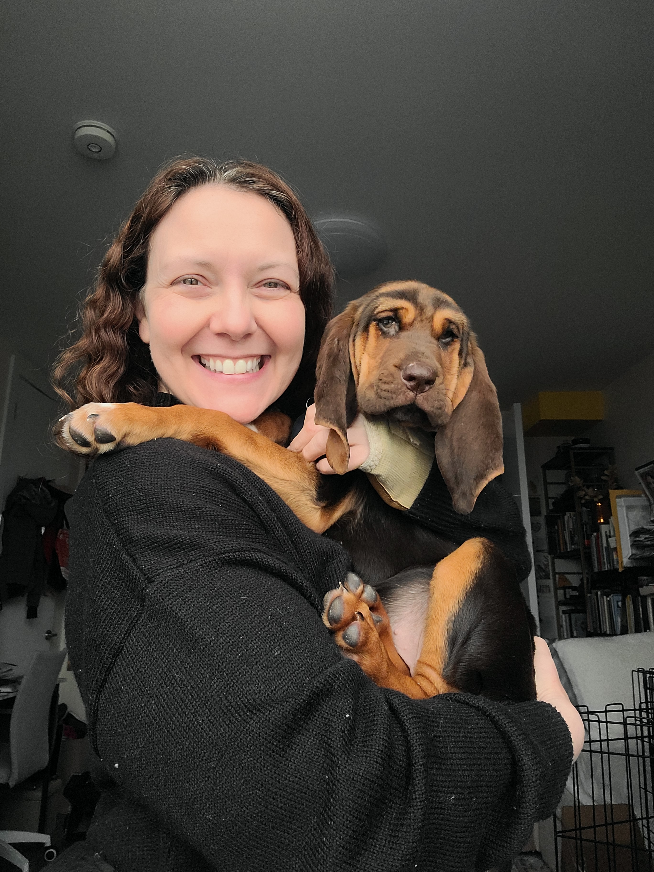 Yesterday, I volunteered at the Muddy Paws Rescue adoption event because they needed some last-minute help. Afterward, I was supposed to pick up two 4-pound puppies who needed a temporary foster overnight. I had my apartment all set up for them; I was so excited. I haven’t had puppies since Dorothy and Sophia, my bloodhound babies, and I’ve never had puppies quite that small. I even caught myself wondering if one of them might be “the one.”