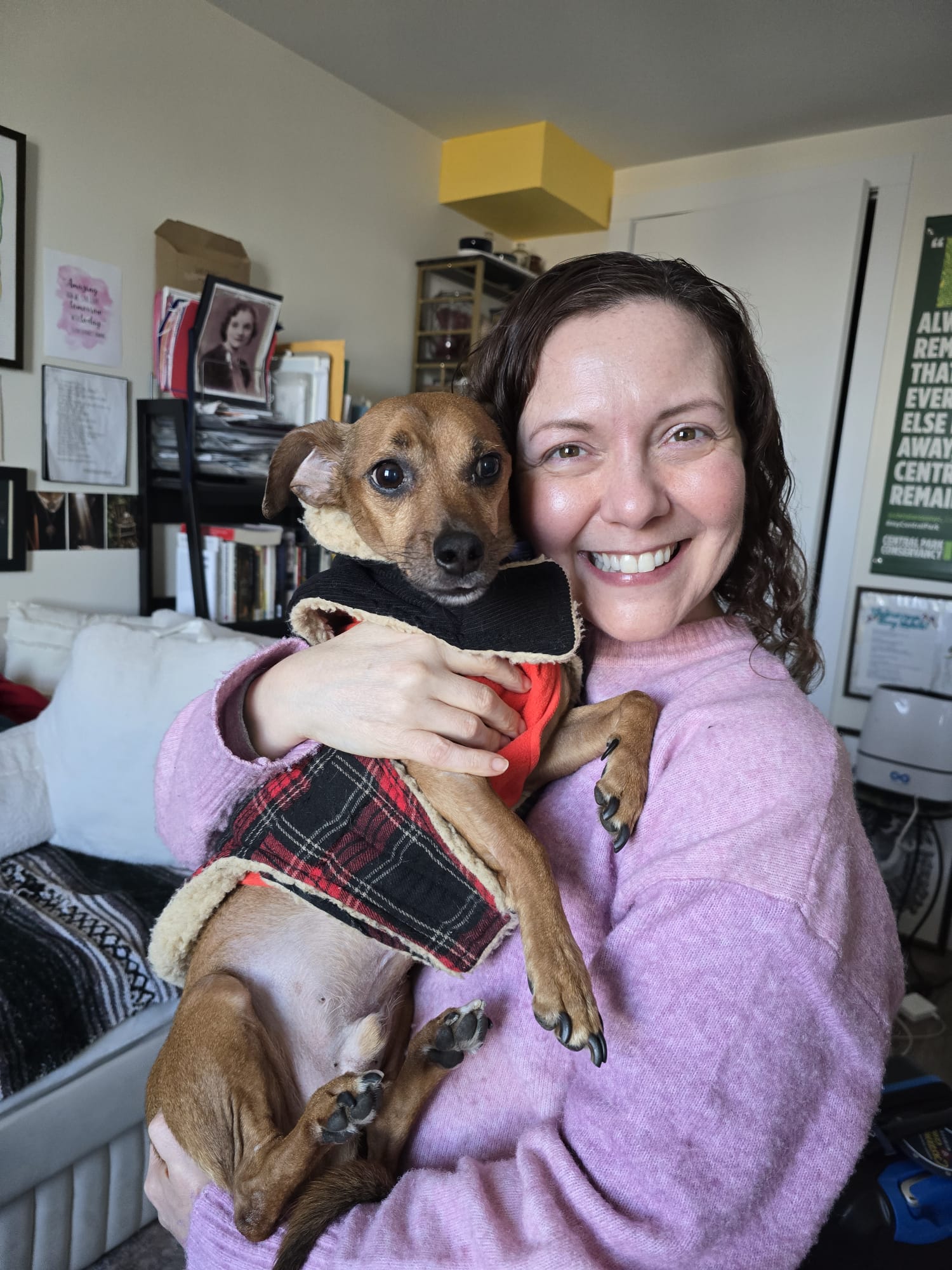 I wasn’t sure how the subway would go but we gave it a shot and she did fantastic. She crawled under the seats and fell asleep. Everyone on the train loved her. A couple and their little boy sitting next to us wanted to know all about her. I said her life was about to get so much better and she doesn’t even know it yet. When they said goodbye before getting off the train, the boy turned to me and said, “She’s going to have a much better life now!” I smiled and nodded. “Yes, she is,” I said.