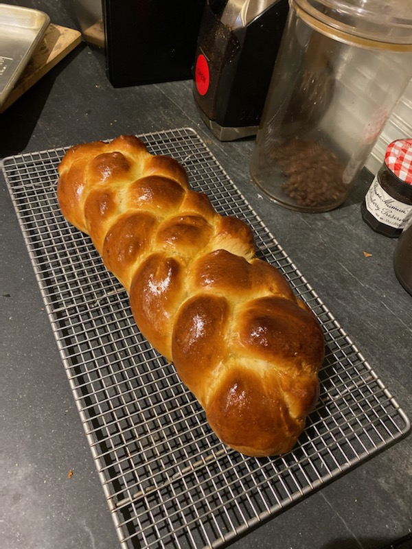 She was living with us for a while during the pandemic. And my husband became a sourdough bread baker. And I was like, well, let’s try challah. And so she taught me how to do it. And then we were trying to we combine three different recipes. Now we have our own recipe. So that’s another level of joy. My adult daughter is a good enough friend to teach me how to do this.