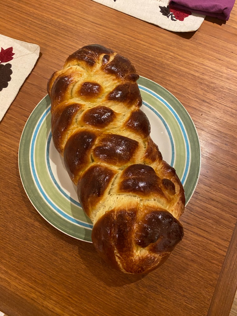 I took a 20-week introduction to Judaism course. It was great. There are about 10 of us maybe, online every week. And all of us started baking challah. It was fabulous. Like we would show pictures and there were people who did gluten free challah. There was a rainbow challah that appeared. There was all this wonderful creativity with color as well as different shapes. People now make animals out of challah. Like these phenomenal octopus shaped challah.