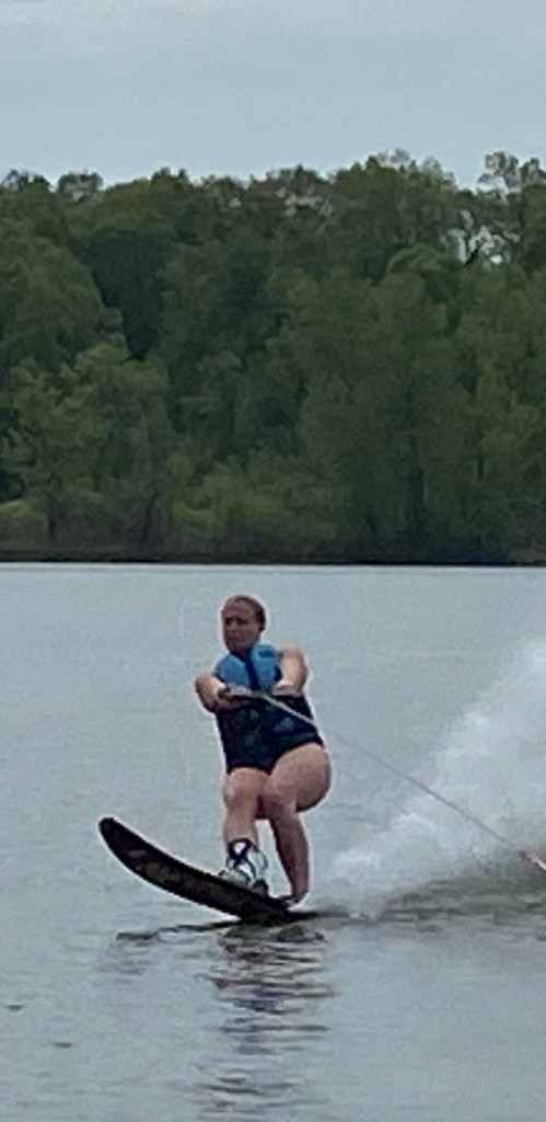 Very interesting to see the two of them go at it very differently. My older son is a perfectionist and has to kind of figure things out before he does them. And so he has struggled, because he doesn’t like the feeling. Whereas my younger son got up faster and at a younger age than my older son because he’s a little more like, โI don’t have to have it figured out. I’ll just try it.โ And my husband is also a water skier but hasn’t been able to ski as much, because he’s got some arthritis issues.